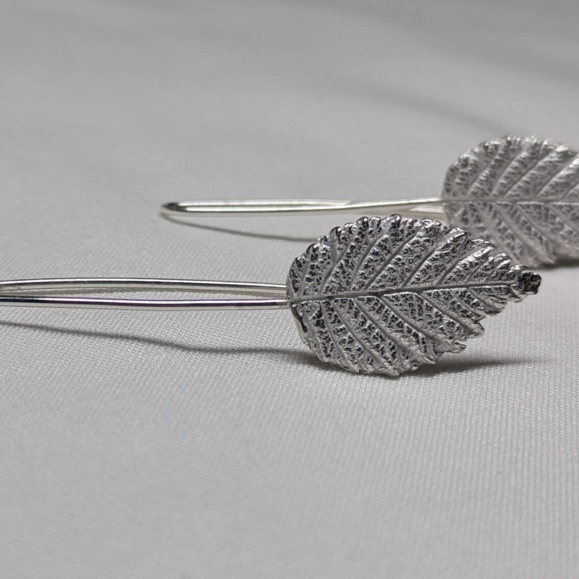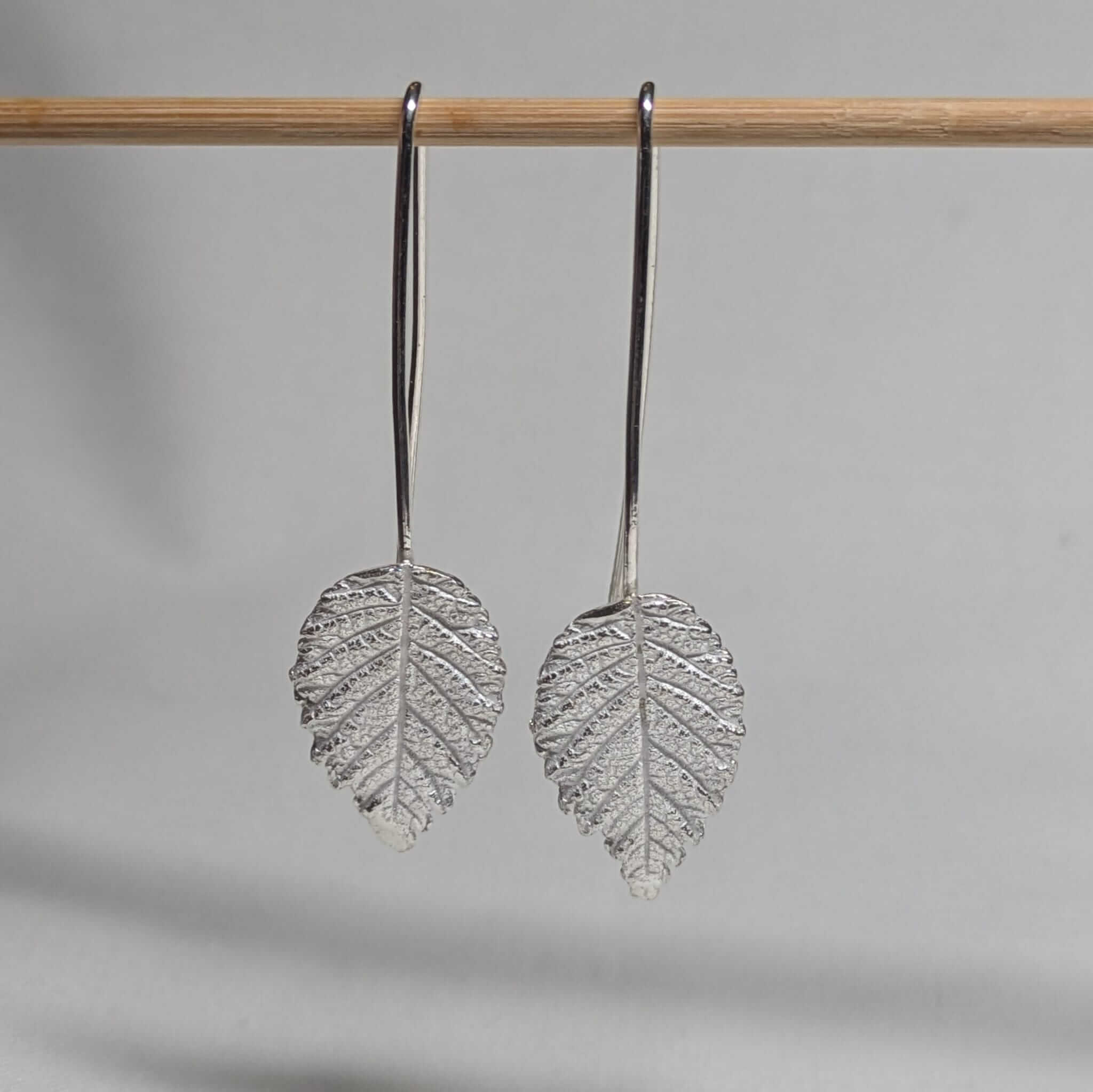 Arracades de plata amb disseny de fulla de roser natural, amb detalls de les venes i textura orgànica. Elegants i lleugeres, ideals per afegir un toc de natura al teu estil diari o per ocasions especials.