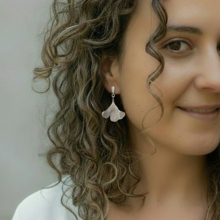 Inspirades en la forma inconfusible de la fulla de ginkgo, aquestes arracades combinen bellesa natural i elegància atemporal. La seva silueta en ventall, plena de moviment i harmonia, sembla dansar amb cada pas, recordant la lleugeresa de les fulles quan el vent les acarona.