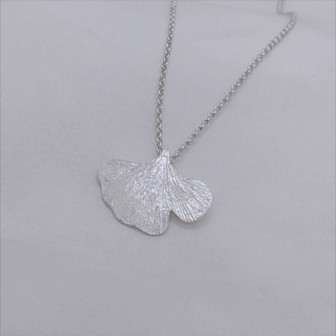 Aquesta peça de plata s’inspira en una fulla de ginkgo biloba caiguda suaument als peus del Monestir de Sant Cugat, un arbre que sembla escoltar el pas del temps amb una paciència infinita. La seva forma en ventall, elegant i ancestral, ha estat transformada en joia per preservar aquell instant breu en què la natura i la història es toquen.