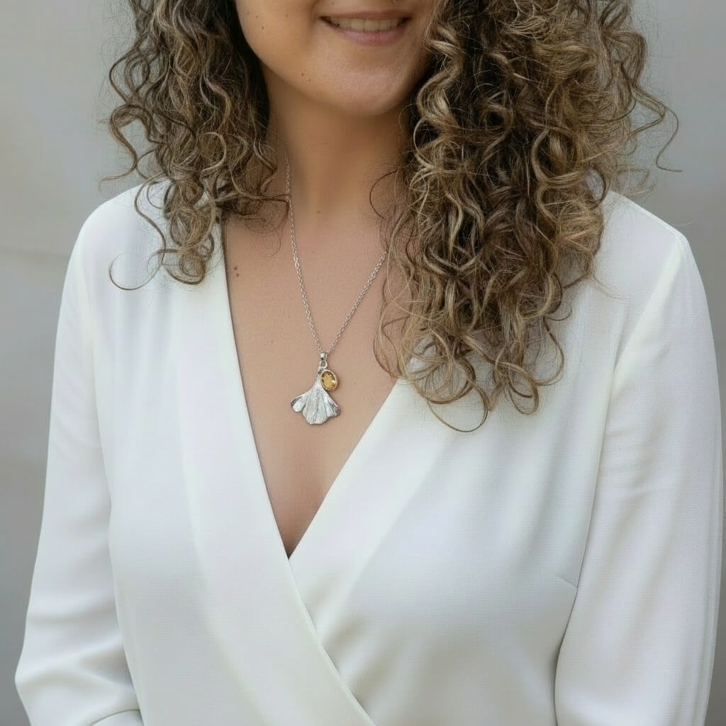De sota les branques d’un ginkgo biloba que vetlla des de fa dècades al Monestir de Sant Cugat, una fulla va caure com un gest delicat de la natura. La seva forma en ventall, plena d’històries i simbologia, inspira aquesta peça que transforma aquell instant efímer en un record perdurable.