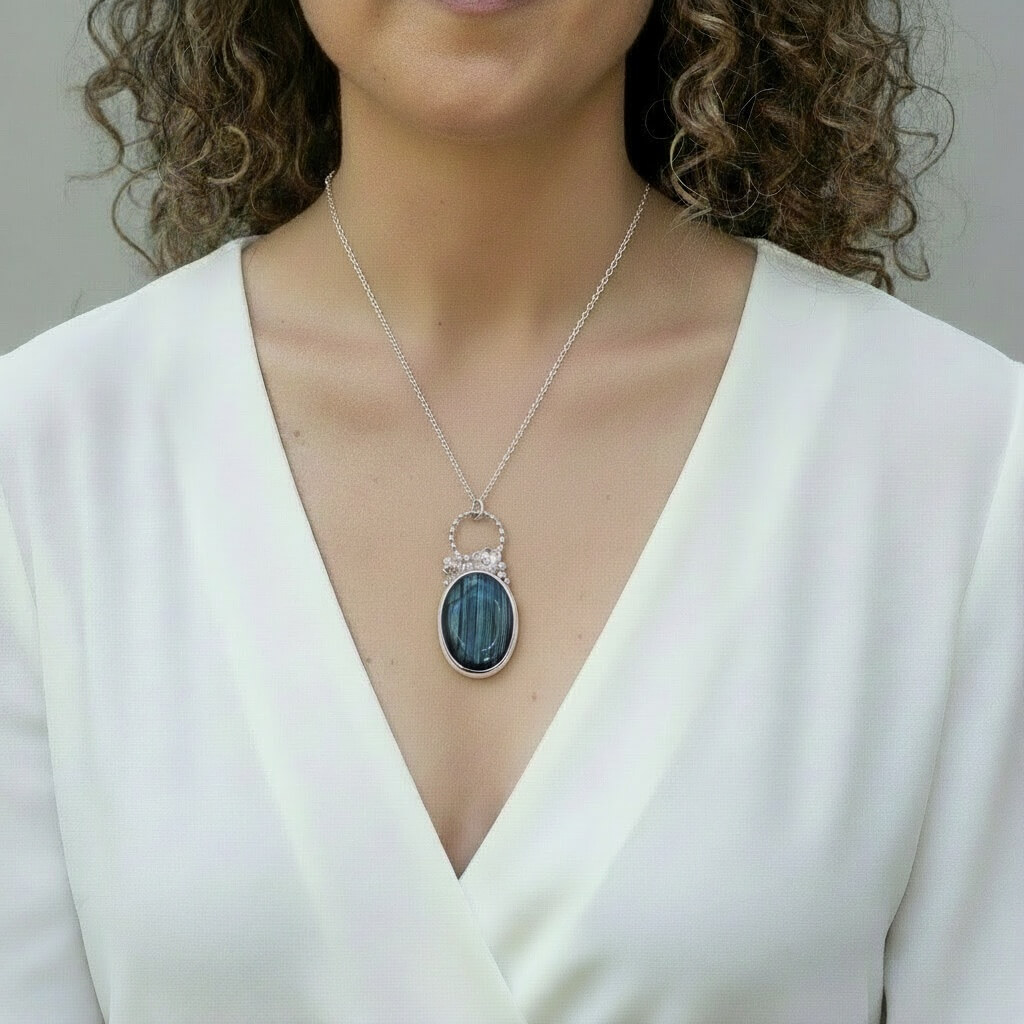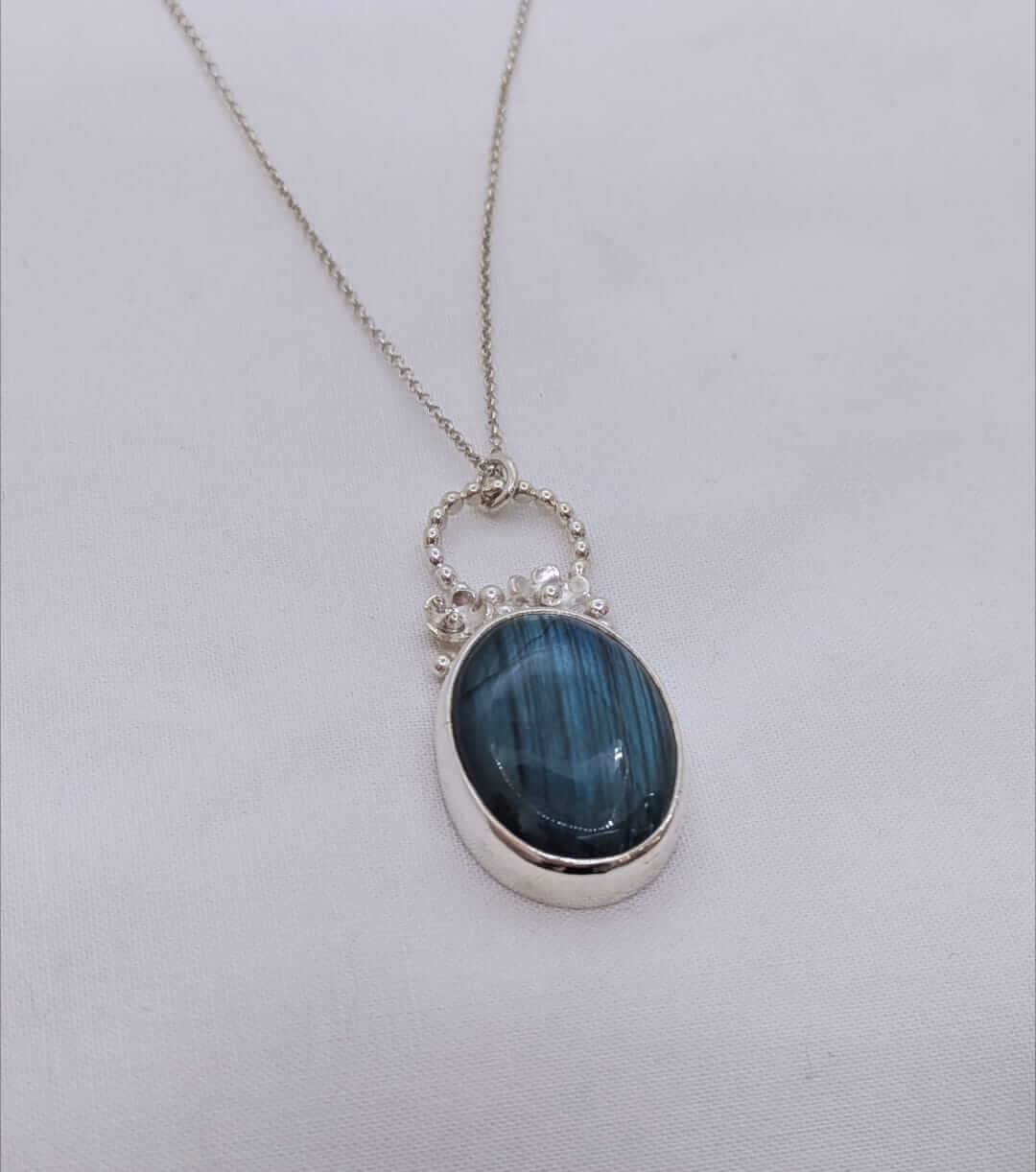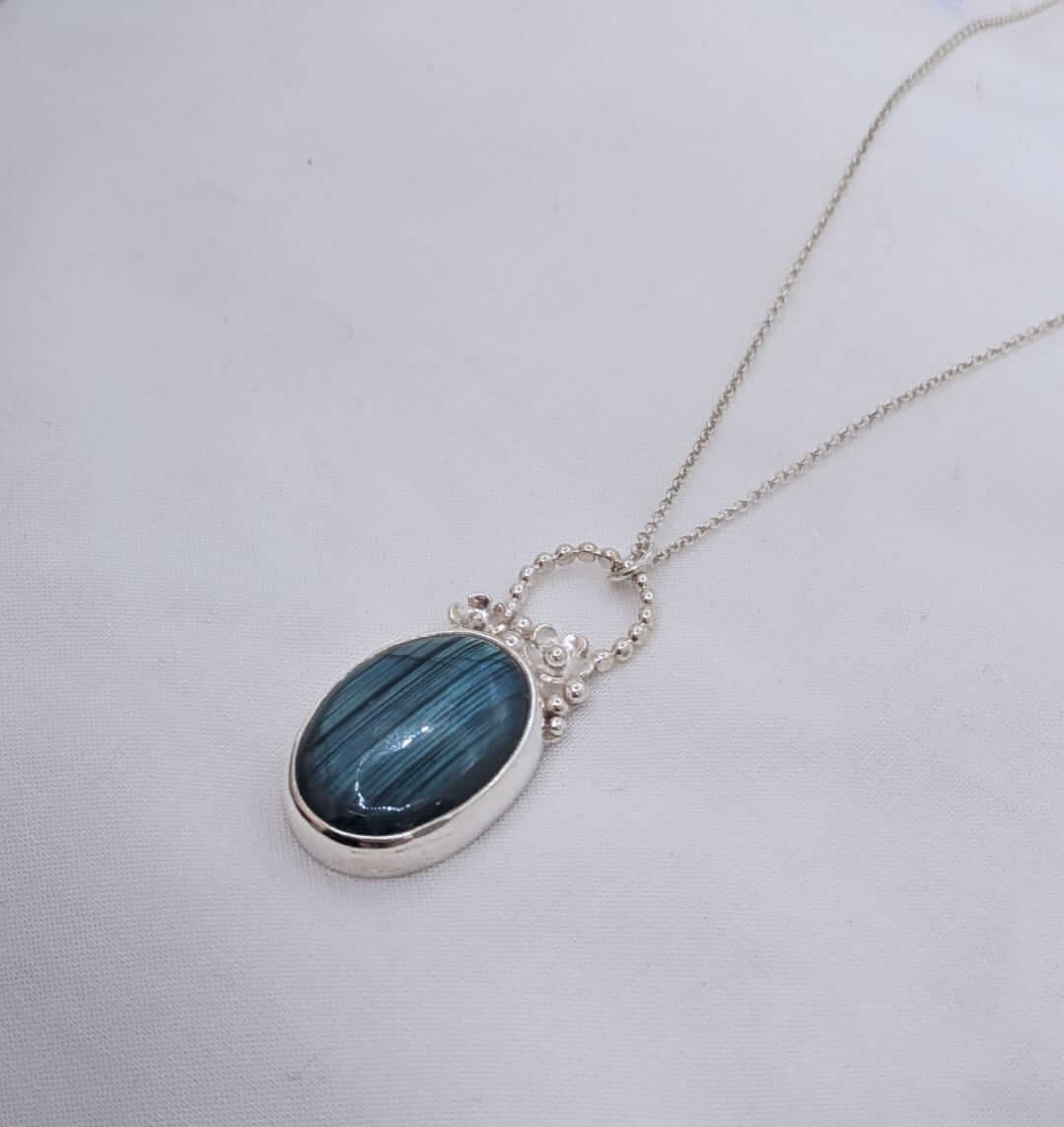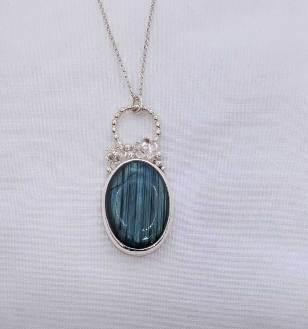 Penjoll de plata amb una preciosa Labradorita amb flors.