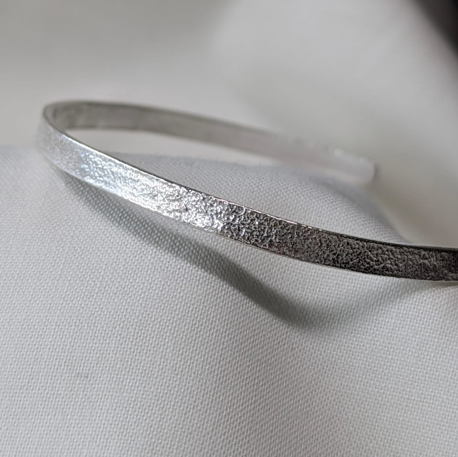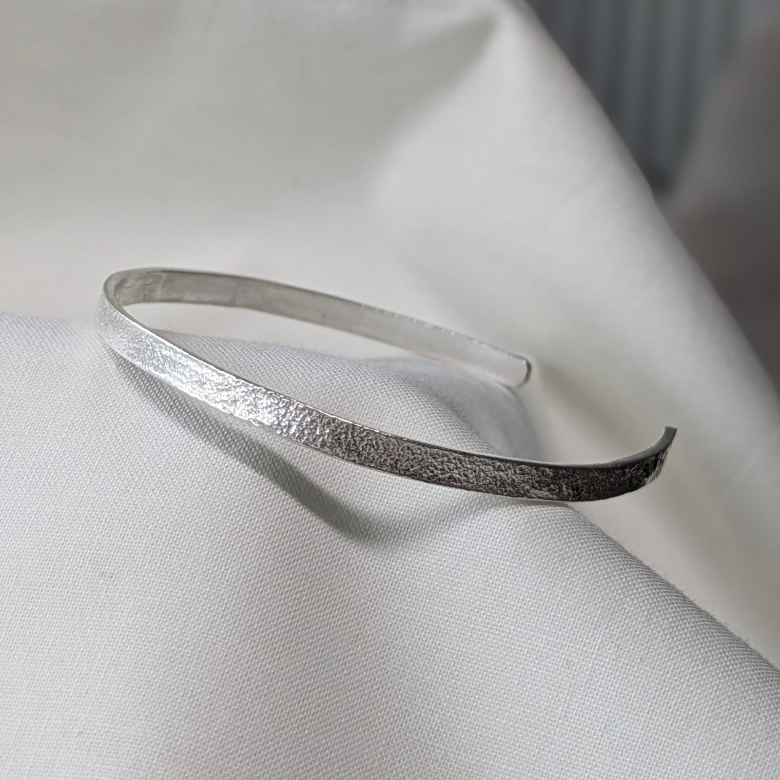 Polsera de plata de llei 925 amb textura única, que aporta un toc modern i distintiu.